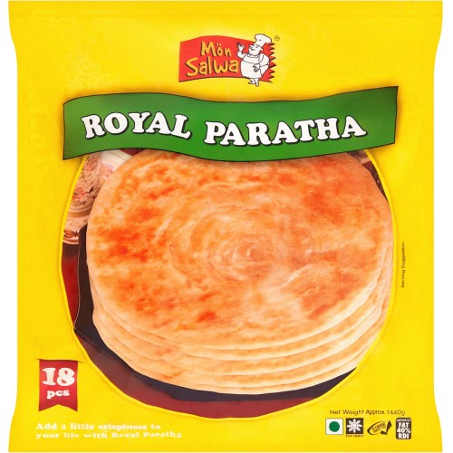 Deliciously soft and flaky royal parathas from Mon Salwa, perfect for a quick and tasty meal. Ready to cook and enjoy with curries, kebabs, or as a breakfast treat. Each pack contains 18 parathas.