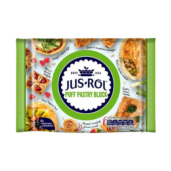 The Jus-Rol Puff Pastry Block delivers great and consistent results. So simple to use, all you need to do is roll out the puff pastry block and get cooking. Perfect for open tarts layered with leftovers and sweet desserts.